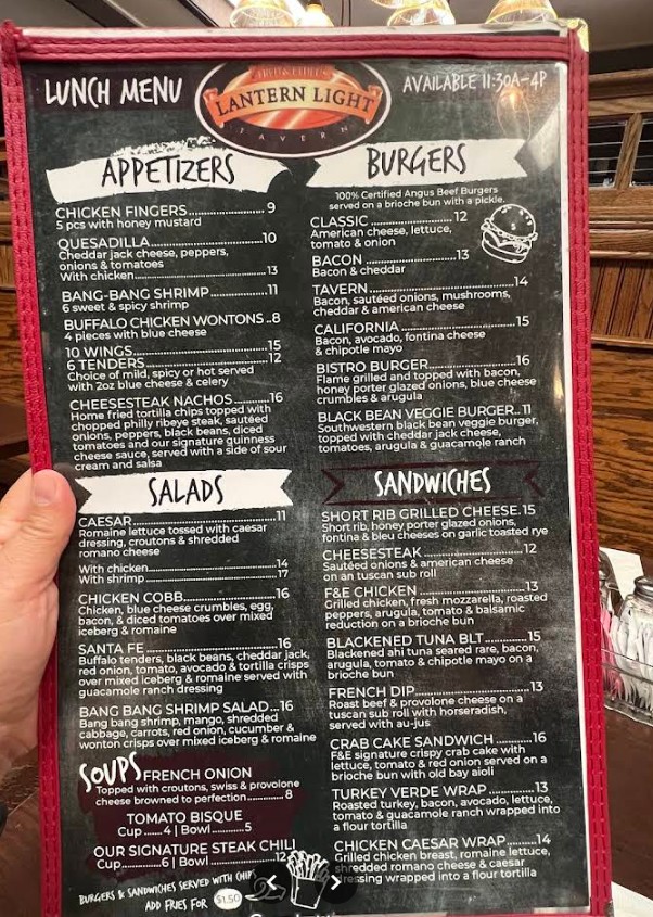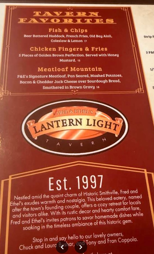 At Fred and Ethel’s Lantern Light Restaurant, we pride ourselves on serving delicious American fare in a laid-back atmosphere. From mouthwatering burgers to fresh seafood, our menu has something for everyone. Nestled in the charming village of Galloway, our quaint restaurant, accented with brick and Tiffany lamps, offers a perfect spot for any meal, whether you’re dining in or grabbing a quick takeout. Come join us for a delightful meal and experience the warmth and hospitality that sets us apart!